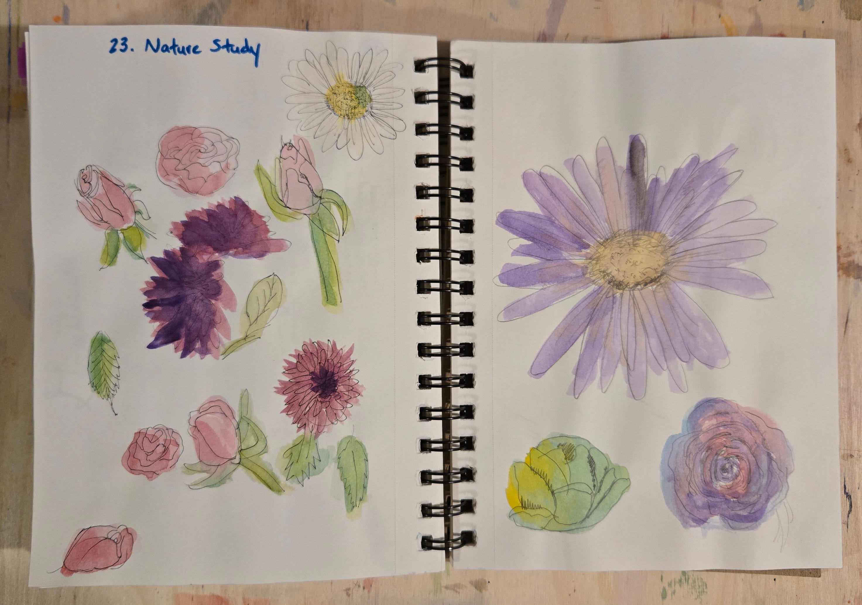 While on a flower kick I tried out a few more practice sketches in my sketchbook.