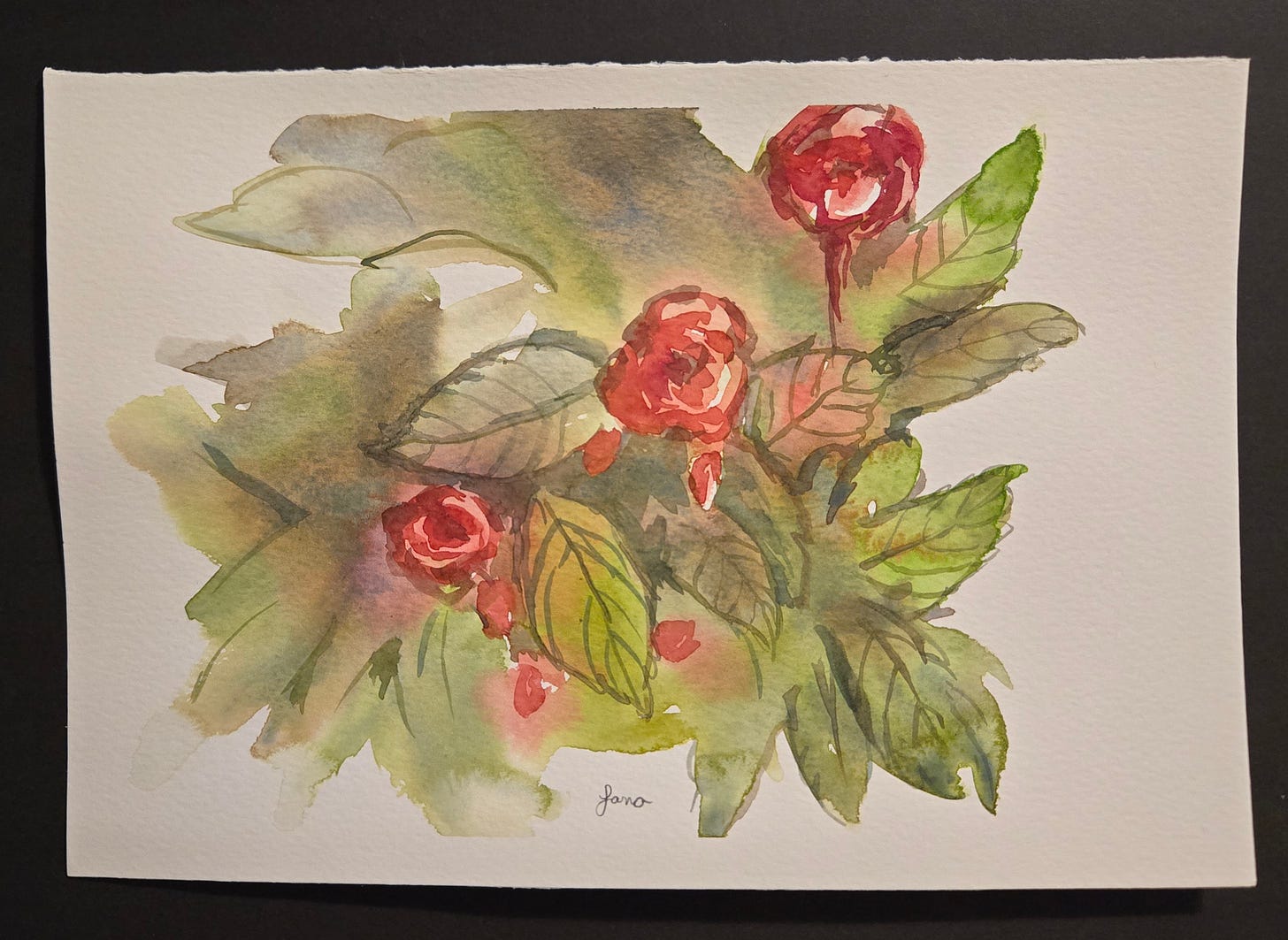 Finally, I did these (below) in anticipation of Valentine’s Day. I’m not a big Valentine’s Day fan, but the school asked for families to bring in a card to be read out loud in class. It was a good excuse to clean up my desk, pull out the space heater (why did it take me this long?), and start painting again. I heard from one of the teachers that the mini flowers were much appreciated, and it made me feel good to do them myself.