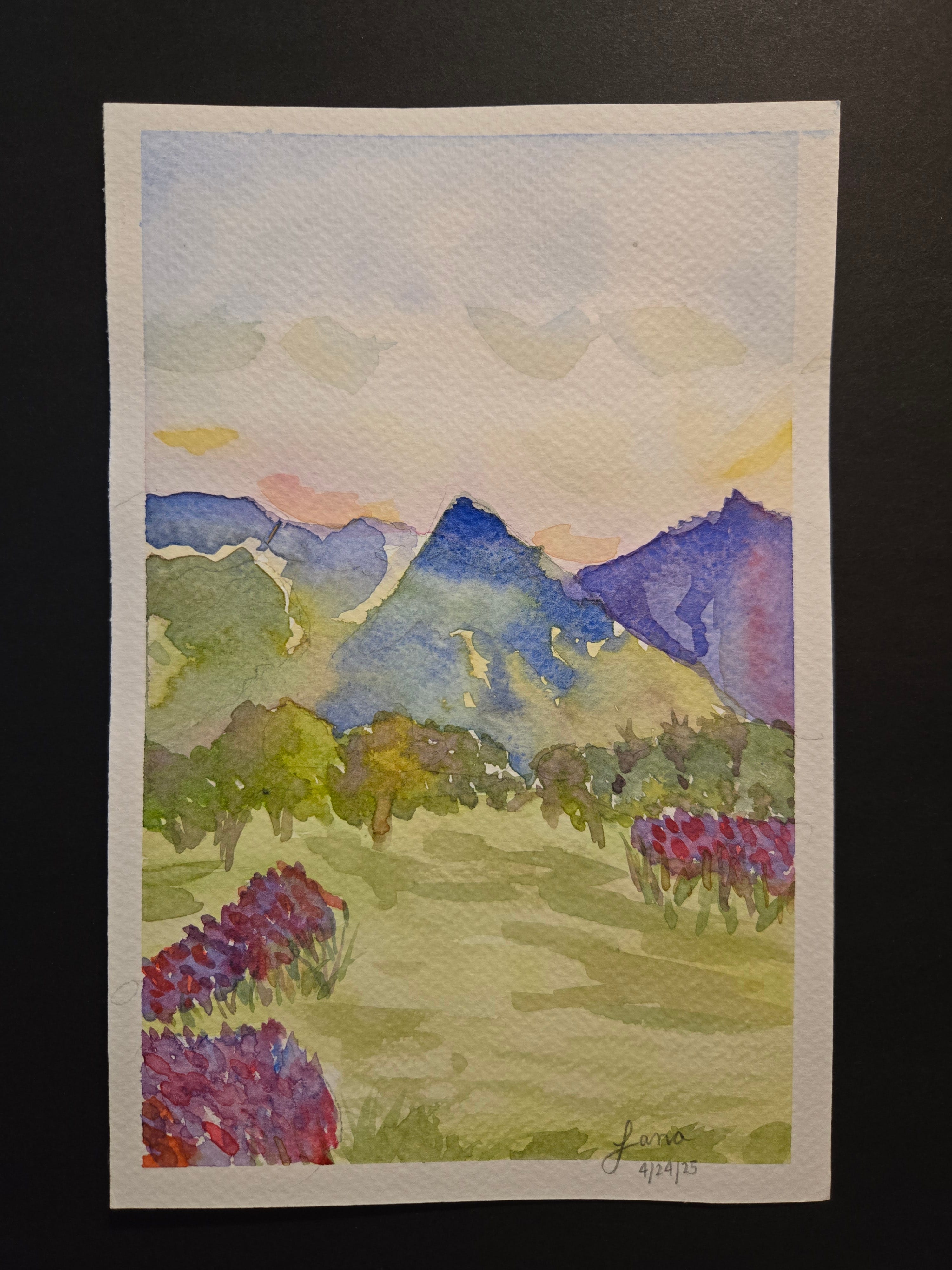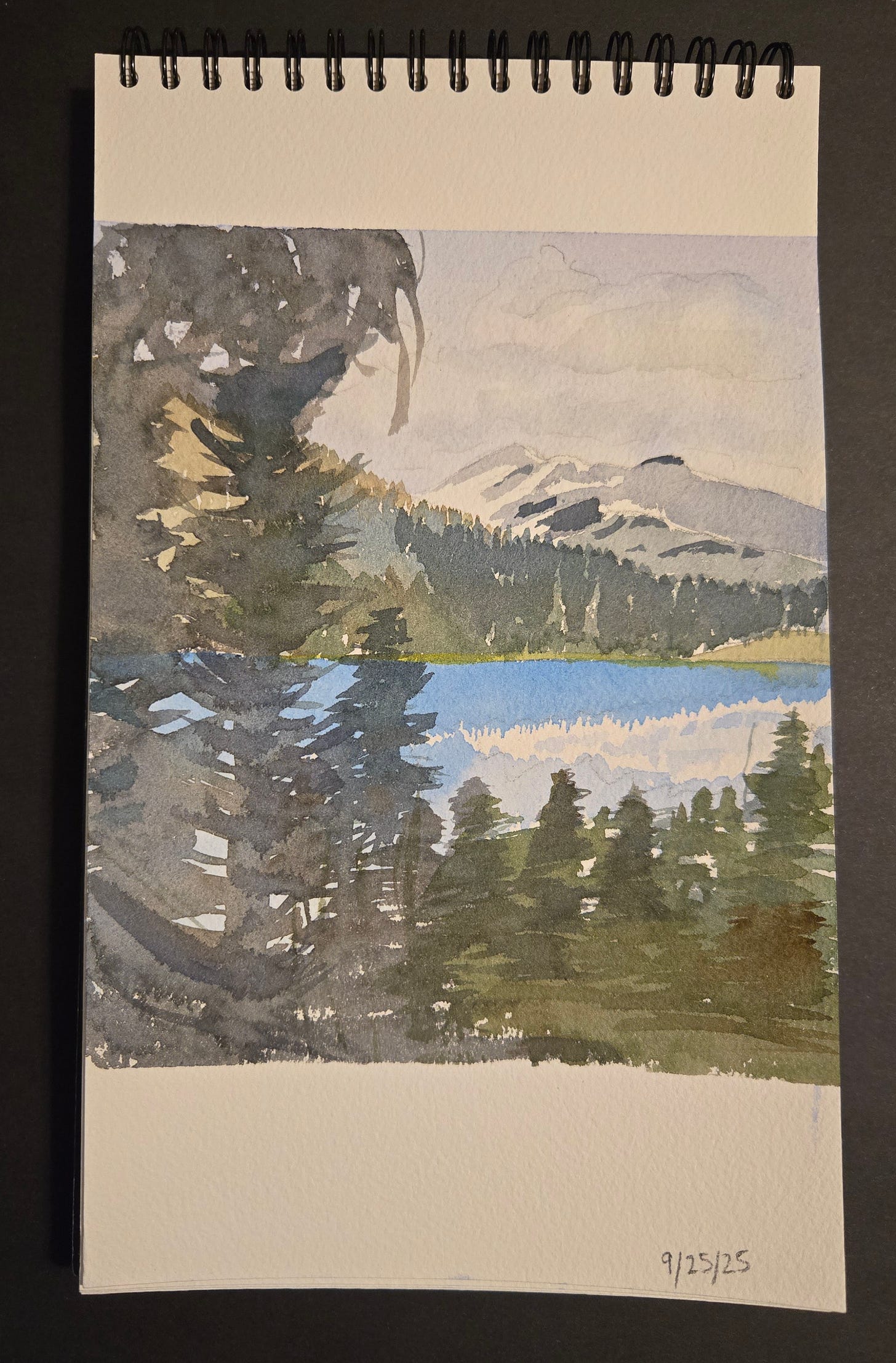 Later, we and a few other family members were gifted a few more “plein air” art supplies for Christmas. At our annual Thanksgiving gathering and summer family reunion, we decided to coordinate bringing our art supplies and spend a little time, while together, doing a few mini “plein air” painting sessions as a group.