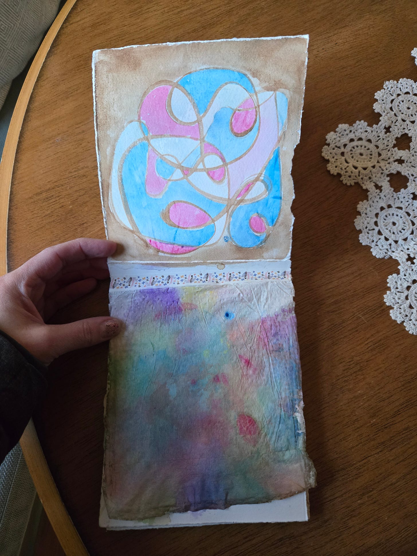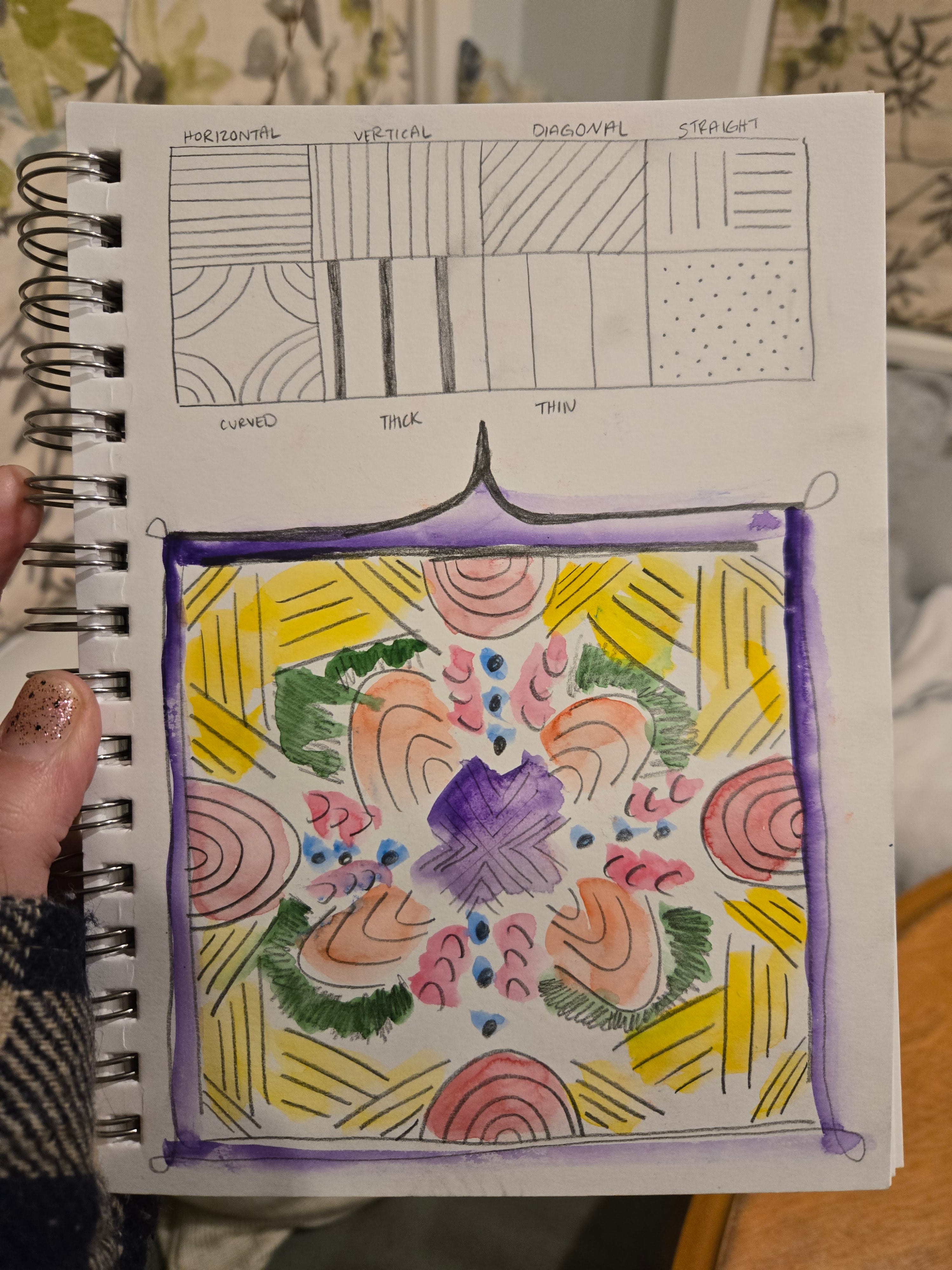 This one here inspired me to try something similar in my sketchbook group project. Here was the result while in progress…
